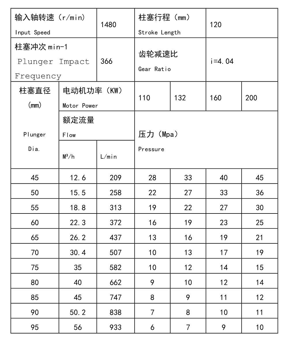 The pump is equipped with in-built chevron gear deceleration device. It has the properties of high transmission efficiency, low noises, stable operation, small size and compact construction. During the running, high-speed shaft can automatically adjust in horizontal direction, which makes it has balanced and reliable transmission, low friction coefficient, high lubrication, low temperature rising at power end, long-time continuous operation, etc. For fluid end, according to different parameter requirements, different kind of packing box can be used. It is unnecessary to dissemble pump head when changing plunger or filling material to make sealed. It is very convenient and save time. The max.crankshaft thrust force is 72KN.